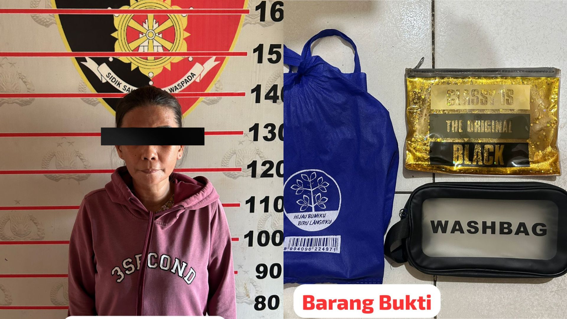 Sejumlah barang bukti turut diamankan petugas, di antaranya beberapa tas yang digunakan untuk menyimpan uang, satu buah kunci lemari, serta satu lembar pakaian yang berkaitan dengan tempat penyimpanan kunci.
