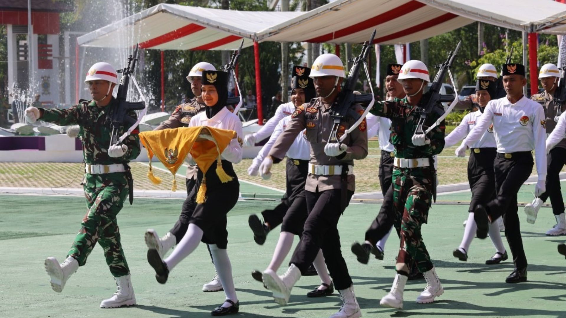 Gerakan Paskibraka yang telah digembleng selama berminggu-minggu terlihat mantap dan penuh konsentrasi. Setiap langkah mereka tertata rapi hingga bendera Merah Putih berkibar anggun di ujung tiang, tanpa hambatan sedikit pun.
