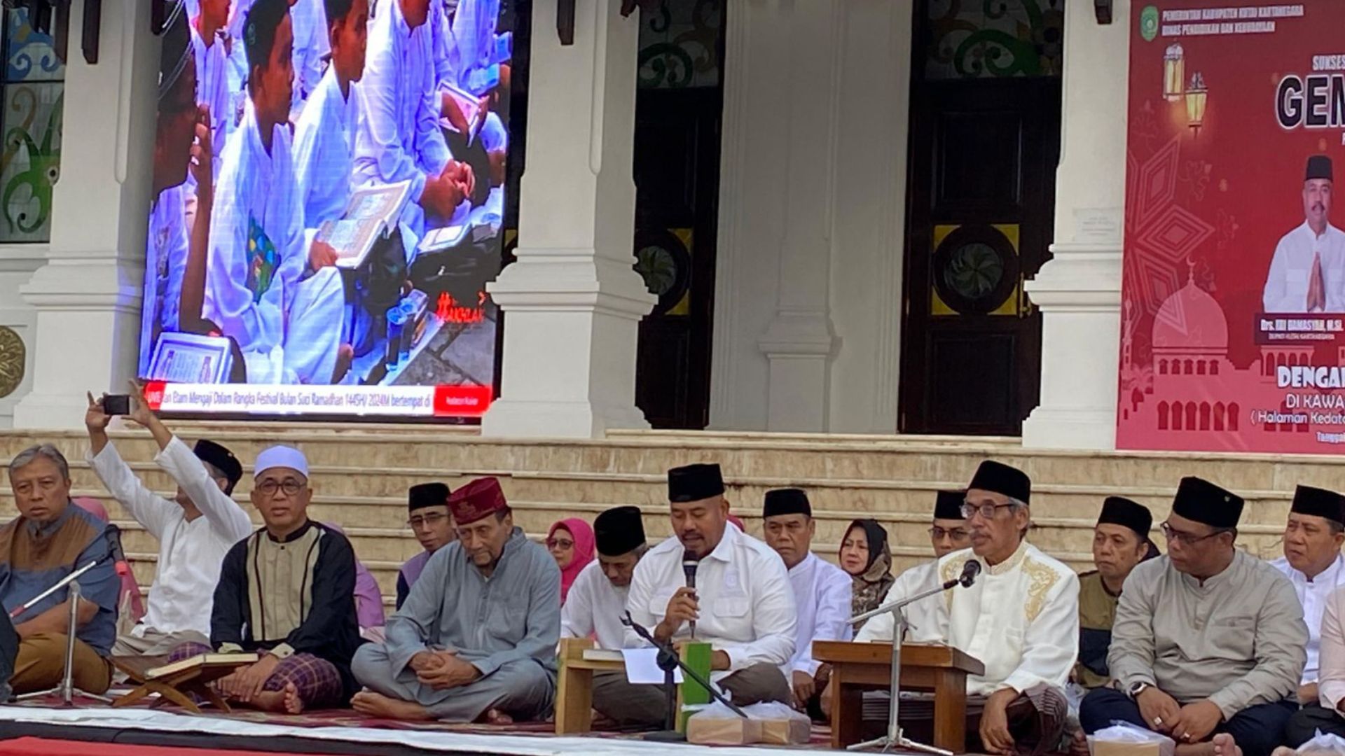 Ribuan peserta didik dari berbagai tingkatan pendidikan, mulai dari SD hingga SMP, berkumpul di Kedaton Kukar untuk mengikuti GEMA yang digelar menjelang berbuka puasa, pada Senin (01/04/2024).