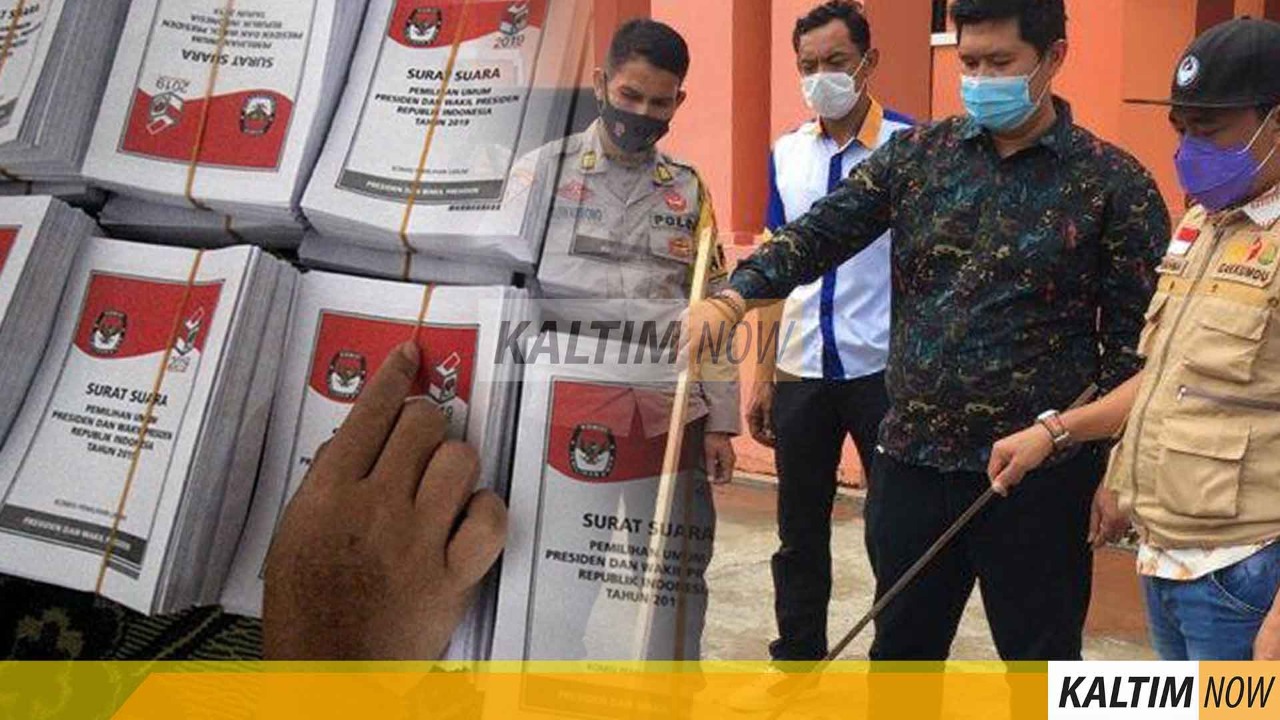 Kutai Kartanegara – Komisi Pemilihan Umum (KPU) Kutai Kartanegara bersama Bawaslu dengan di dampingi Polri/TNI melaksanakan pemusnahan surat suara yang diketahui rusak dan melebihi kuota, di halaman depan kantor KPU Kukar, Jalan Robert Wolter Mongisidi, Tenggarong.