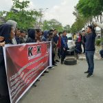 Samarinda – Belasan mahasiswa yang tergabung dalam Komunitas Peduli Keadilan (KPK) melakukan aksi demo di depan kantor Pengadilan Negeri (PN) Samarinda, Kamis (10/10/2019) siang. Mereka menuntut kepastian hukum atas kasus
