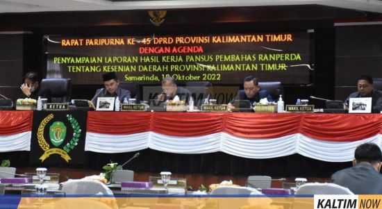 Samarinda, Kaltimnow.id – DPRD Provinsi Kalimantan Timur (Kaltim) menggelar rapat Paripurna ke-45, salah satu agendanya yakni penyampaian laporan akhir hasil kerja Pansus Raperda tentang Kesenian Daerah, Selasa (18/10/2022). Rapat Peripurna