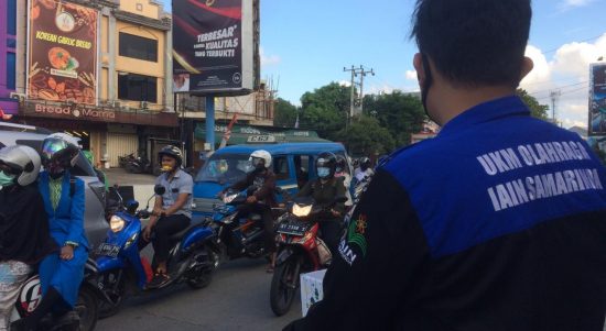 Samarinda – Mahasisiswa (UKM) Olahraga Institut Agama Islam Negeri (IAIN) Samarinda melakukan aksi sosial galang dana, di Simpang Empat Lembuswana Samarinda, pada Senin (10/08/2020). Galang dana tersebut untuk membantu korban