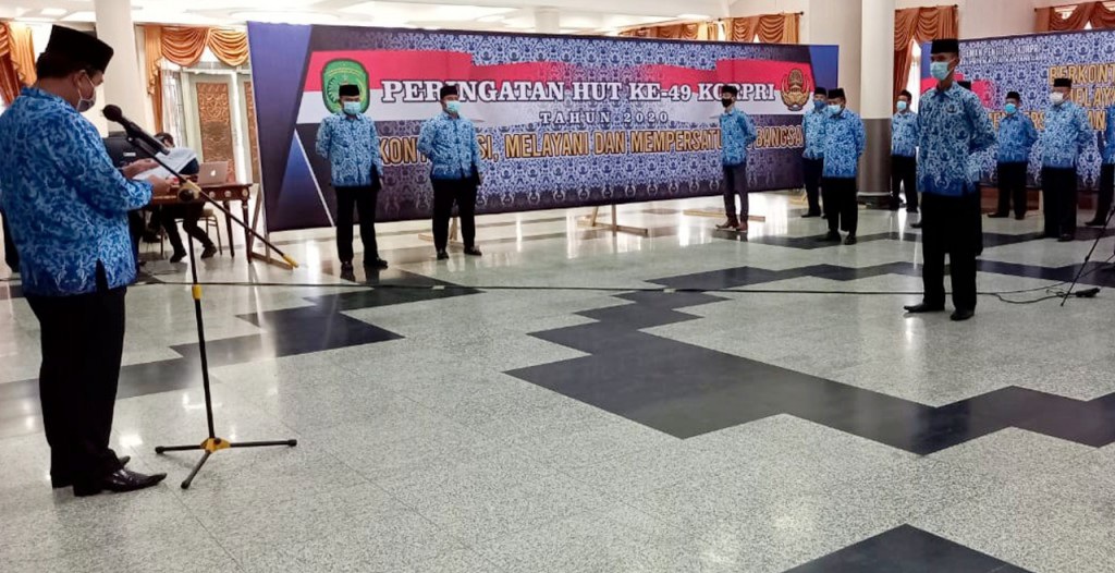Kukar, kaltimnow.id – Sekretaris Daerah (Sekda) Kabupaten Kukar, Sunggono selaku Ketua Dewan Pengurus Korpri Kukar, perayaan Hari Ulang Tahun (HUT) ke-49 Korp Pegawai Republik Indonesia (KORPRI) tahun 2020, menghadapi perubahan dan persaingan anggota Korpri tidak boleh takut.