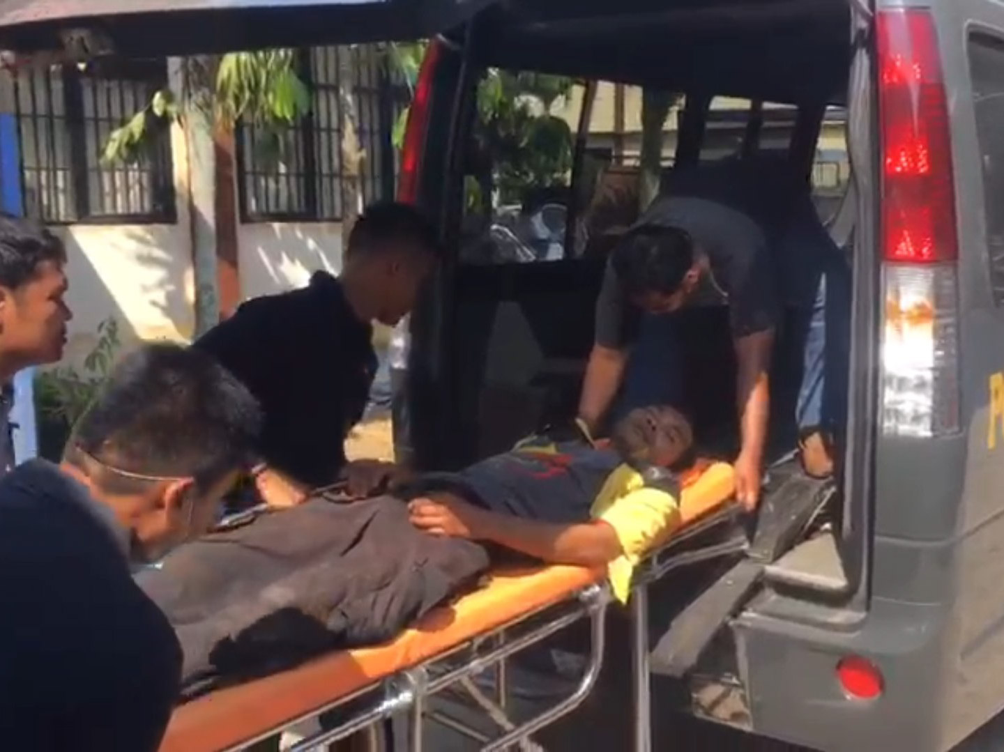 Pria itu langsung terduduk dan tengkurap, sampai akhirnya pingsan tak sadarkan diri. Petugas kepolisian yang berada di lokasi, langsung memberikan oksigen.
