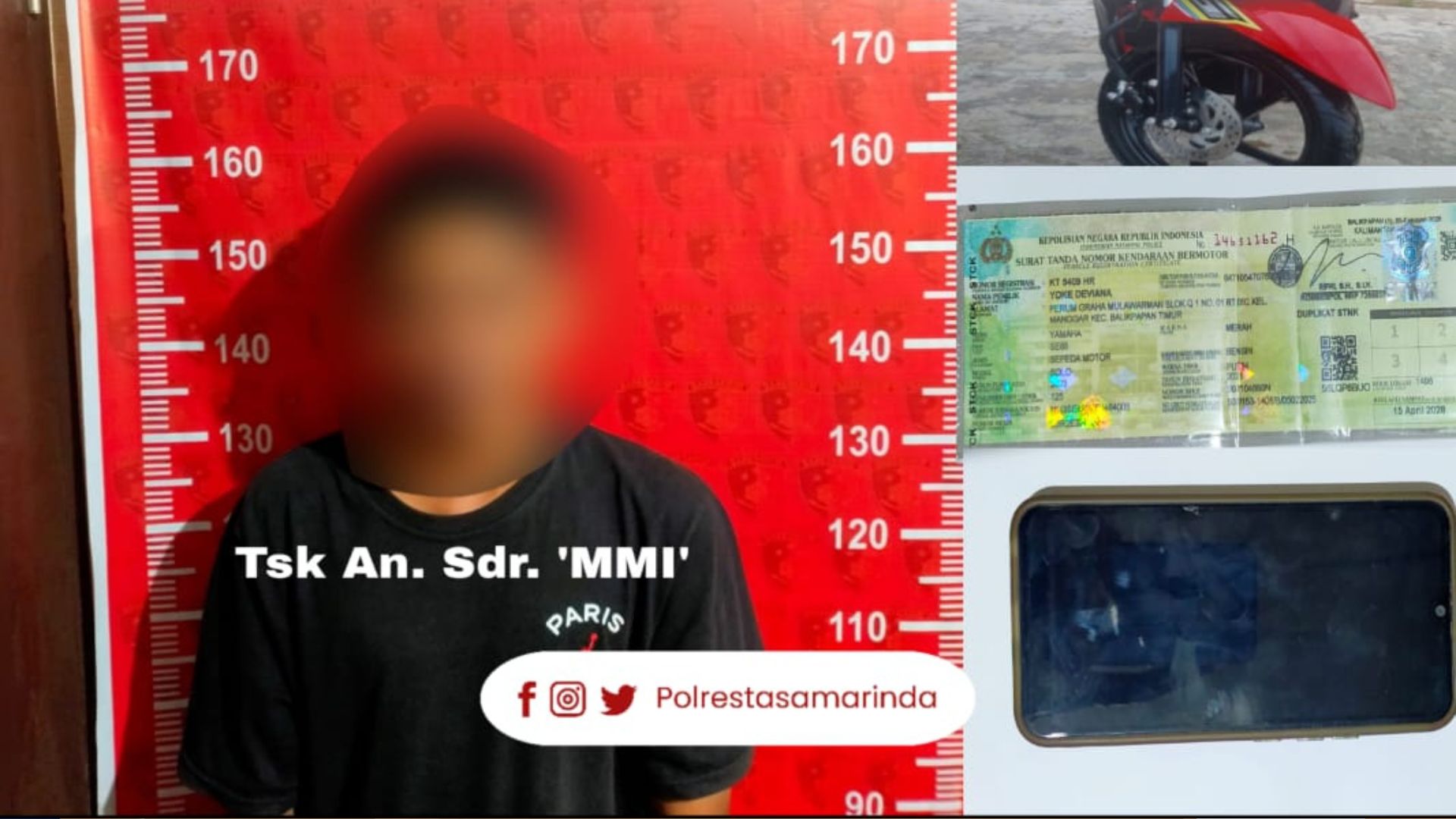 Hasilnya, tersangka berhasil diamankan di area parkir Masjid Islamic Center Samarinda, bersama barang bukti 1 (satu) unit sepeda motor.
