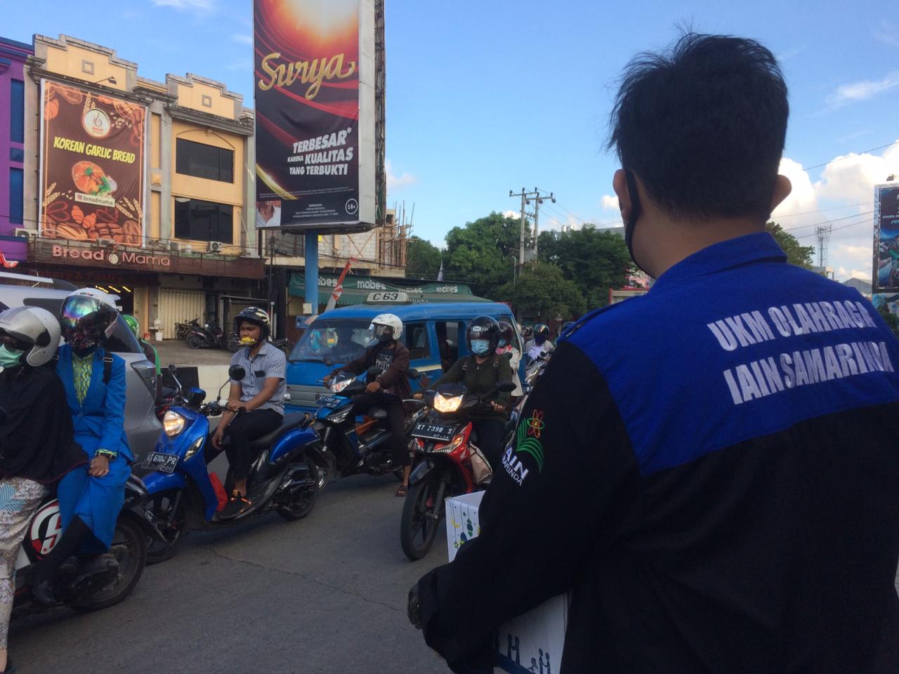 Samarinda – Mahasisiswa (UKM) Olahraga Institut Agama Islam Negeri (IAIN) Samarinda melakukan aksi sosial galang dana, di Simpang Empat Lembuswana Samarinda, pada Senin (10/08/2020).